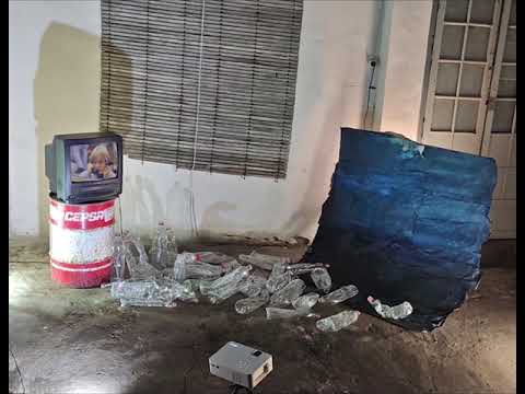 Valor para el agua es una videoescultura multicanal que plantea el monitor como un objeto escultórico en sí mismo, un elemento más de una obra escultórica que alberga dos acciones paralelas a modo de causa-efecto: un found-footage de David Hoffman sobre el funcionamiento del comercio financiero en Wall Street, fecha desconocida, y una videocreación propia proyectada, respectivamente. Botellas de plástico vacías conectan ambos elementos en la instalación; la iluminación presenta -mediante la sombra de barril y monitor- a Wall Street como un Tótem hegemónico que se impone sobre el collage donde se ha proyectado la videocreación. De esta última, comentar que consta de una base de telas cosidas entre sí y pintada en diferentes tonos de azul sobre la que se mueven mis manos intercalando aperos de labranza y gestos enérgicos. Metafóricamente, las acciones de Wall Street con respecto al agua como bien de comercio ‘‘labrando’’ el mar.